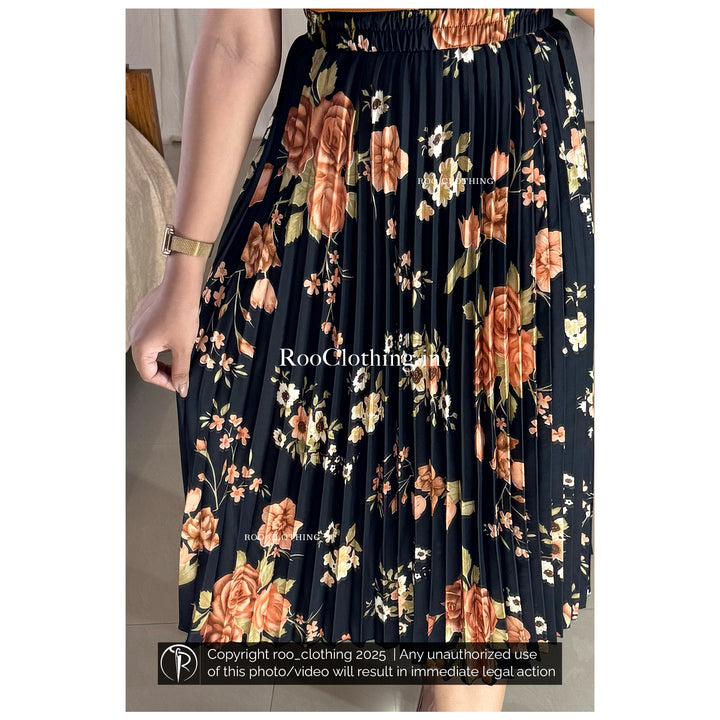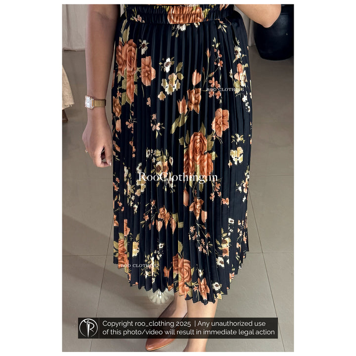 #FloralSkirt #PleatedSkirt #MidiSkirt #WomenFashion #ElegantStyle #CasualChic #BohoLook #TrendyWear #ComfortableFashion #IndianFashion