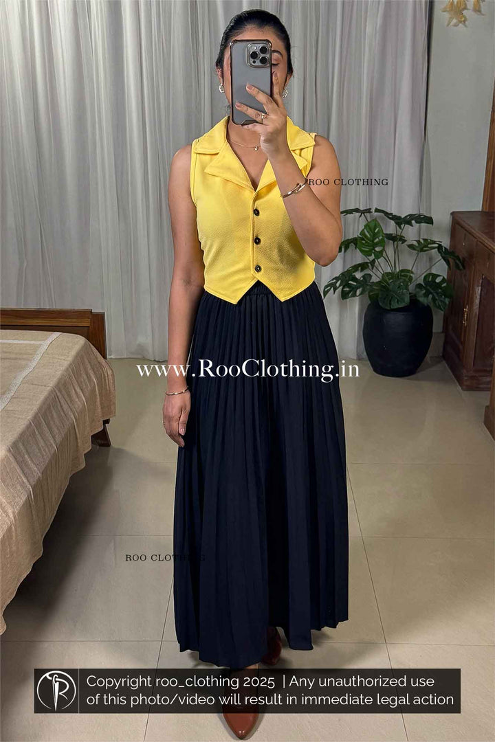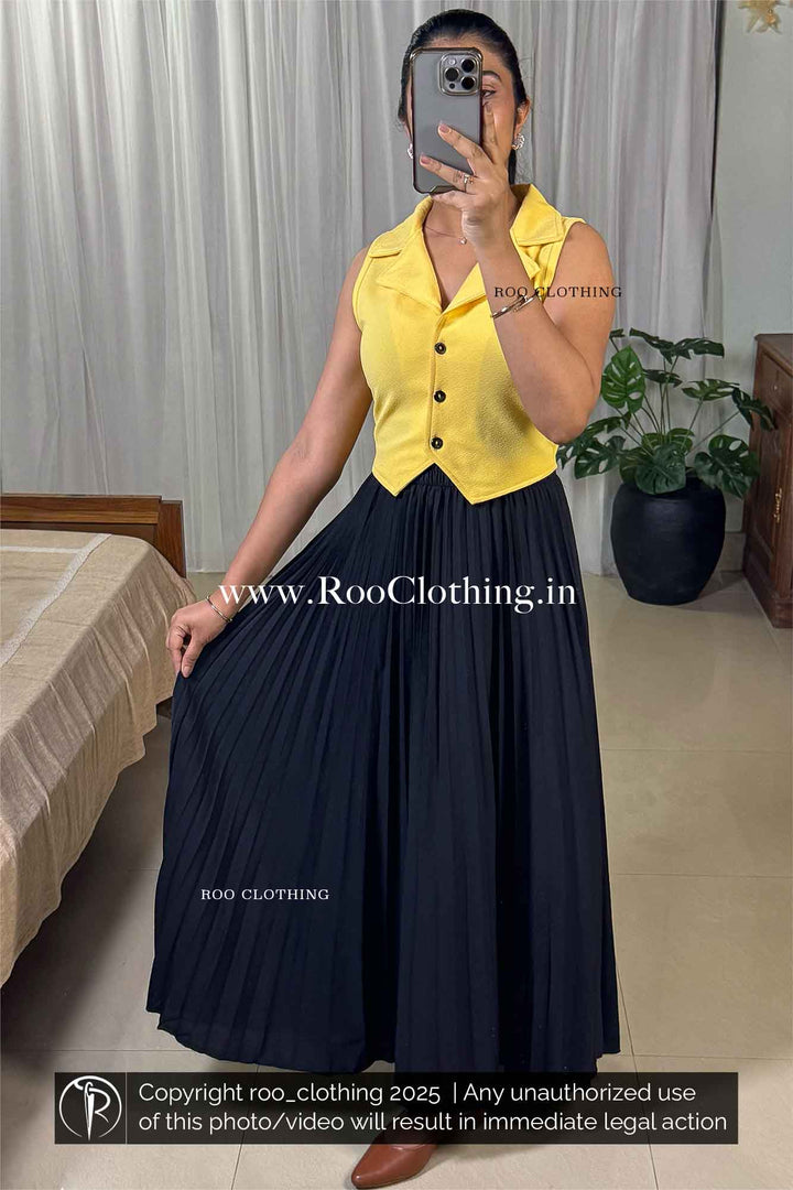 Elevate your wardrobe with our Plain Full-Length Black Accordion Pleated Skirt, a timeless staple that effortlessly combines elegance, comfort, and versatility. Designed for the modern woman, this skirt transitions seamlessly from casual daywear to chic evening looks.
